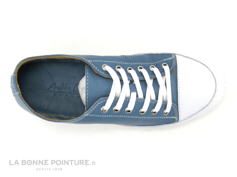 Vous fermerez vos belles tennis bleu jeans Andrea Conti avec le lacet blanc, passant à travers 6 oeillets métalliques.