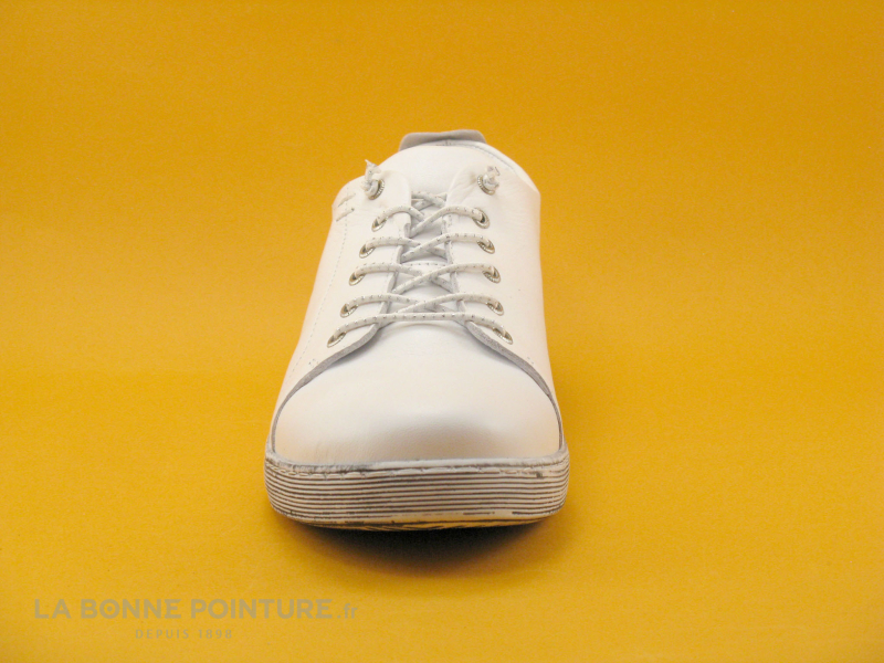 Le lacet élastique blanc et argent traverse 6 oeillets métalliques et permet d’enfiler rapidement la chaussure, pas de lacer à nouer !
