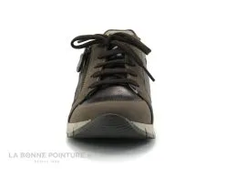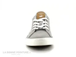 Cette basket basse Caprice 23654 est en cuir souple blanc, avec la base et la partie arrière en cuir argenté.