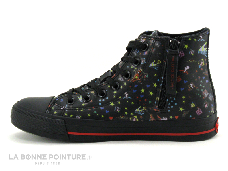 Les baskets montantes noires et multicolores Dockers Gensheimer 36UR911 X Art Peace and Love, des baskets Femme collector à réserver sans attendre !