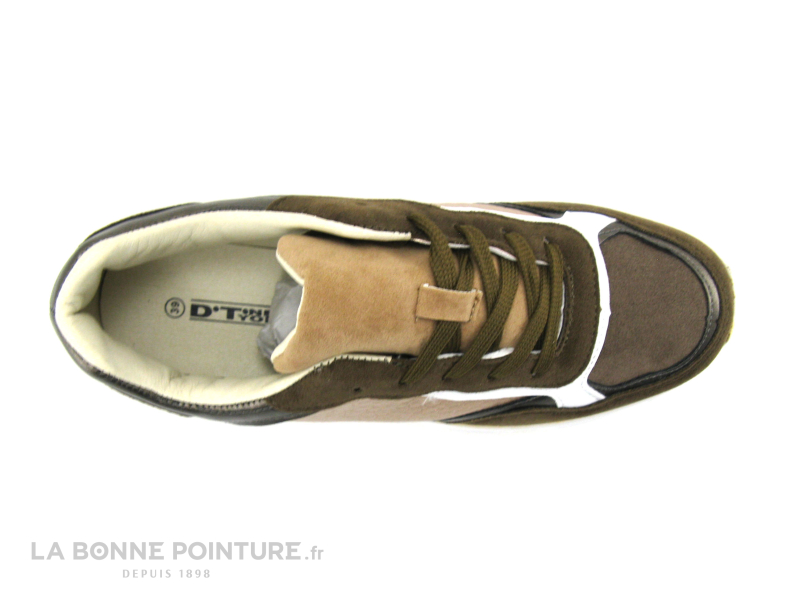 Le lacet plat kaki traverse 5 oeillets pour fermer la chaussure DT New York.