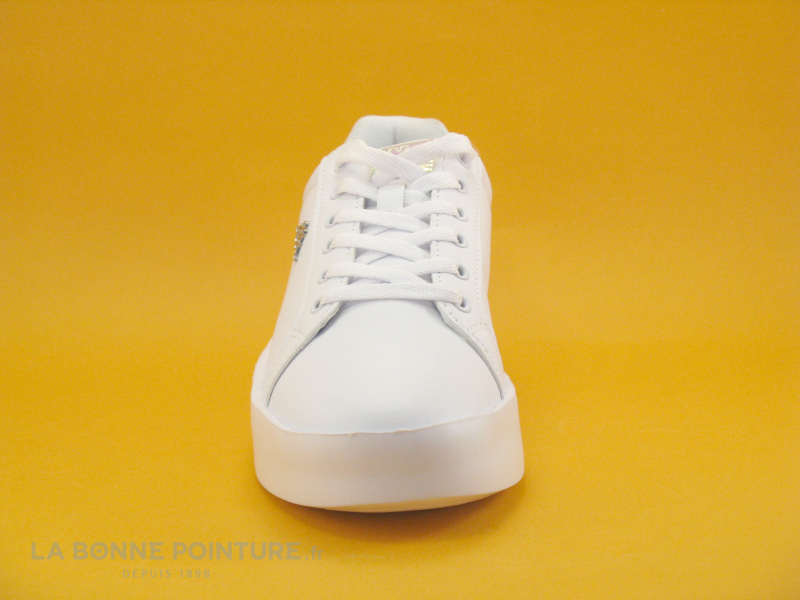 Le lacet plat blanc traverse 6 oeillets afin de fermer efficacement les sneakers Kappa Amelia.