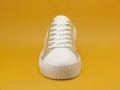 On aime la semelle tricolore qui vient parfaire cette chaussure La Vie est Belle, blanc cassé, noire et beige foncé.