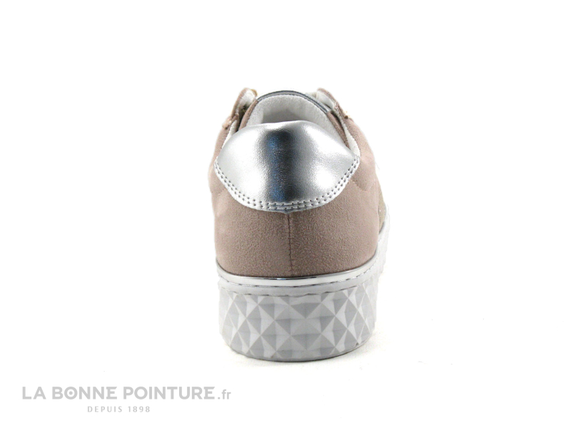 Ces sneakers Femme ont un bel aspect velouté, avec un empiècement argenté à l’arrière et une partie fantaisie sur un côté.