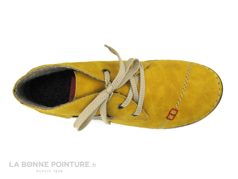 L’intérieur de la chaussure montante jaune Rieker 52543-69 est confortable et bien chaud en textile molletonné.