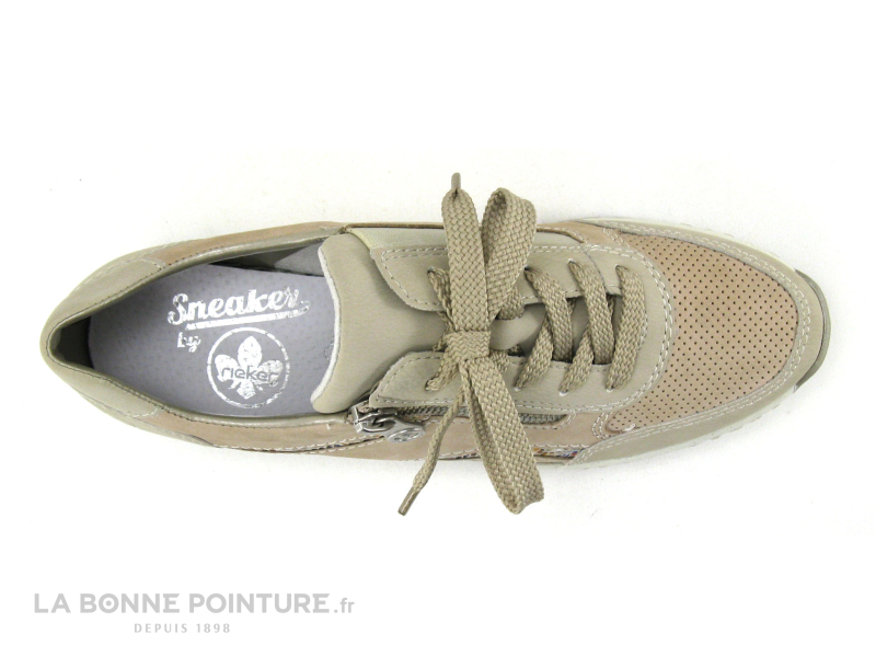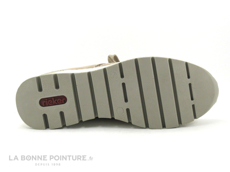 Equipée d’une fermeture éclair latérale, la basket beige Rieker se ferme en un clin d’oeil.