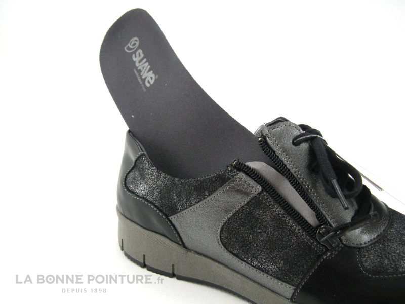 La basket confort Femme Suave Nancy se ferme rapidement avec la fermeture éclair sur le côté, le lacet noir permet d’ajuster la chaussure à votre morphologie.