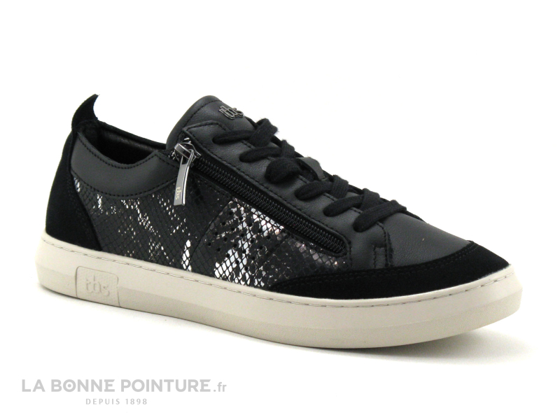 Les baskets Femme en cuir noir et façon reptile argent Tbs Pannosa, des sneakers Femme qui allient mode, confort et grande qualité !