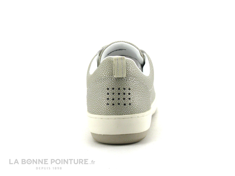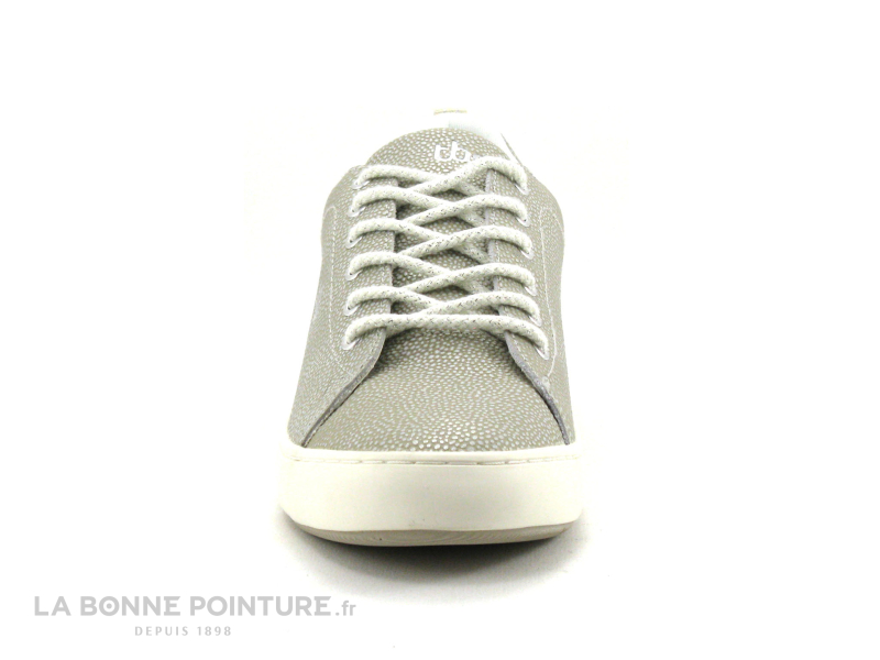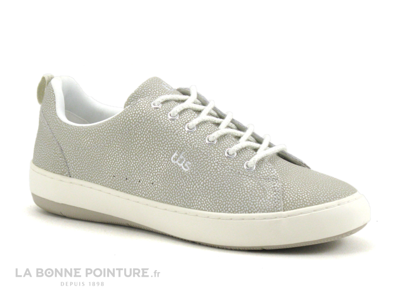 Cette ravissante tennis Femme Tbs Thimora est en cuir beige, Ă l’aspect minĂ©ral avec relief et reflets argentĂ©s.