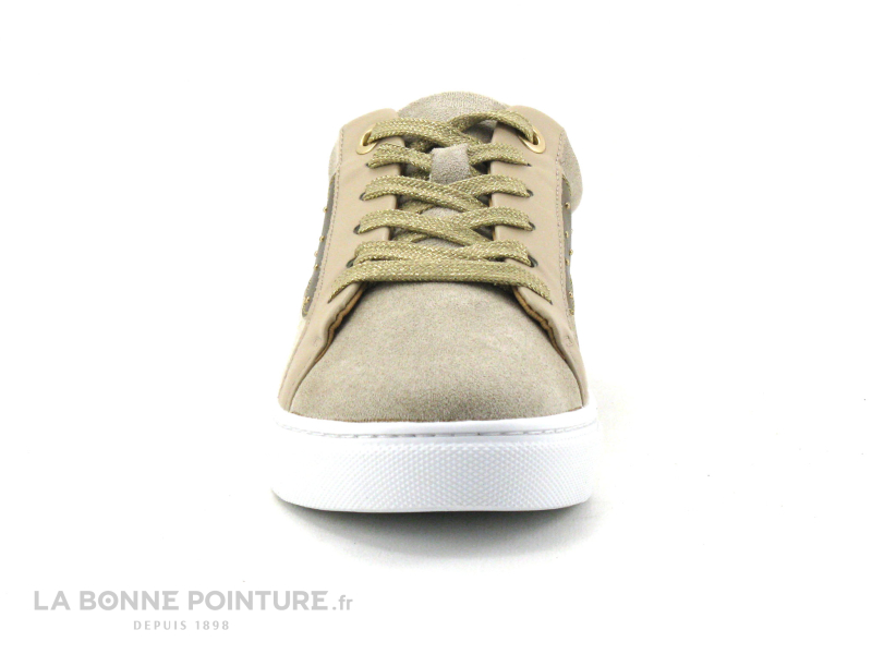 Vous fermerez vos baskets avec le lacet plat beige et or qui traverse 6 oeillets.