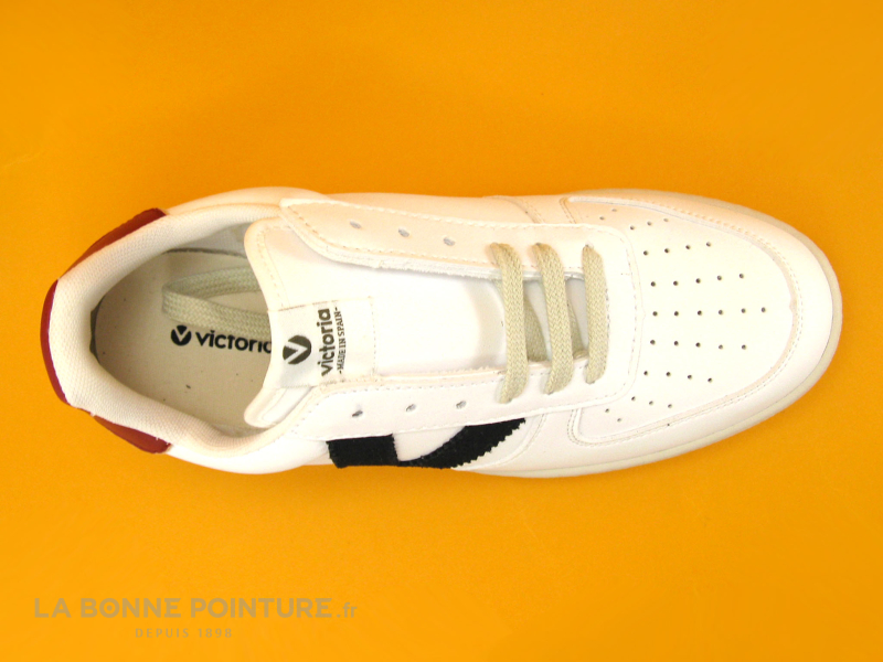 Cette basket mode Femme blanche se démarque avec sa partie rouge à l’arrière, ainsi que le “V” de Victoria bleu marine sur le côté de la chaussure.